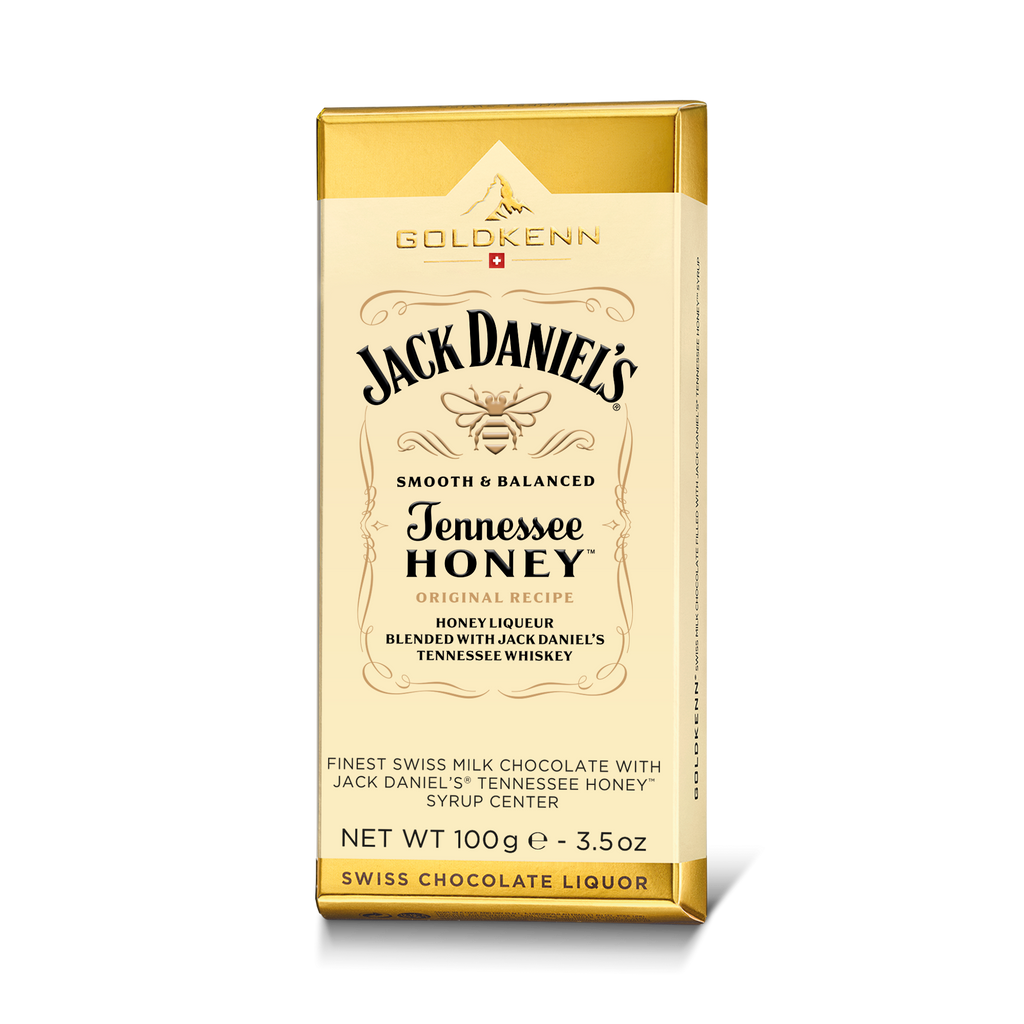 GOLDKENN CHOCOLATE JACK DANIEL'S HONEY 100G, delicioso chocolate suíço que derrete na boca com recheio do famoso licor Jack Daniel's de Mel , contendo 9,5% de álcool.